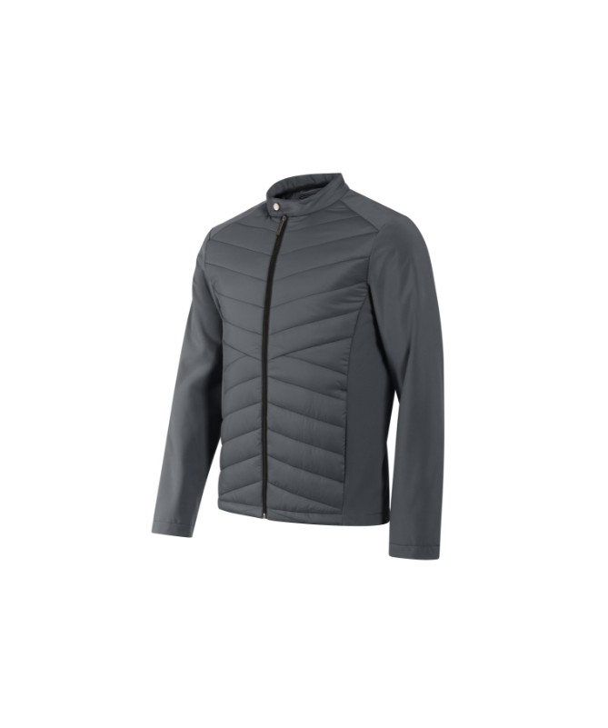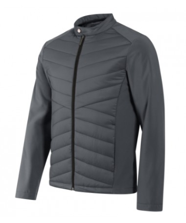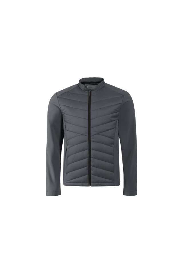combinație de material matlasat și softshell, croială ce prezintă cusături laterale, guler ridicat cu nasture, fermoar spiralat pe toată lungimea , buzunare laterale cu fermoar spiralat, buzunar aplicat pe interior la nivelul pieptului, acces în vederea personalizării în partea din spate a căptușelii